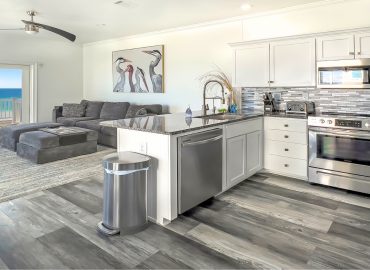 The Upper East wing of Ocean Air presents a splendid beachfront duplex, thoughtfully divided into four well-appointed units. Each of these units boasts a panoramic view of the beach, complete with a private beachfront deck for you to savor the captivating surroundings. Inside, you’ll find a fully-equipped kitchen, a comfortable living room, a spacious dining area, and two king bedrooms, each with its own private full bathroom. For added versatility, the units feature a Lovesac sectional that can double as a sleeper and a generously sized Lovesac beanbag that can easily accommodate one.
